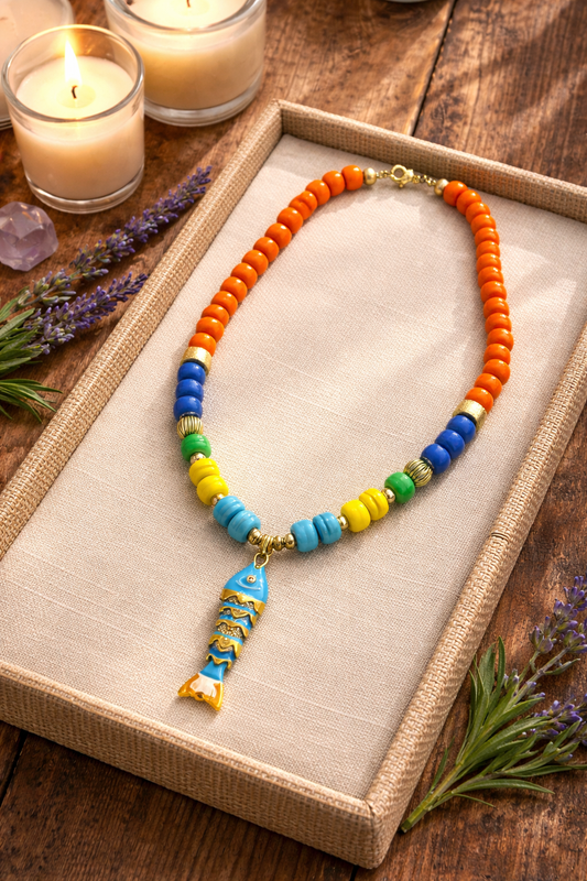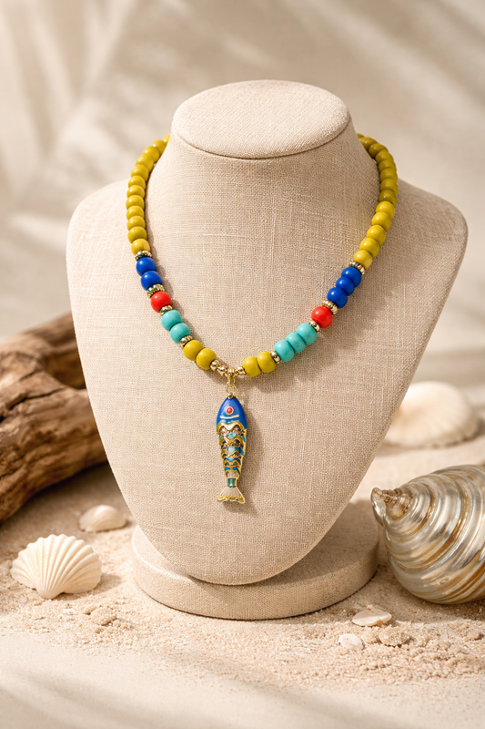 A Collar de Cuentas de Vidrio y dije de Pez 🐠
