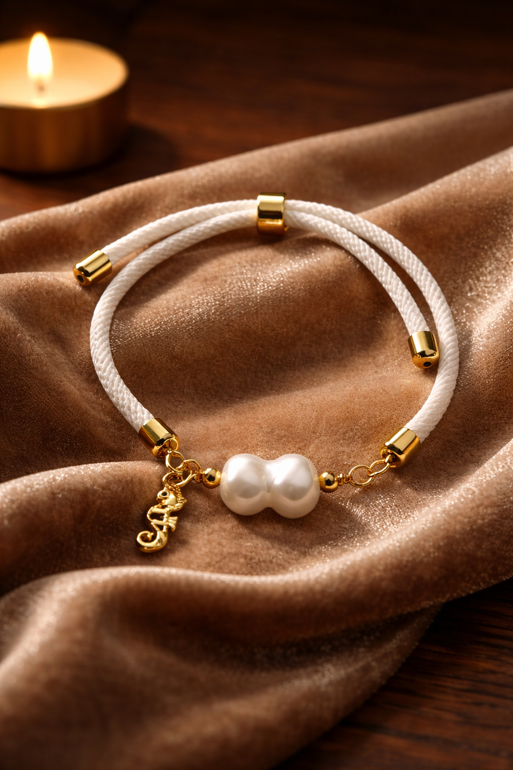 A Pulsera de cordón blanco con Perla natural