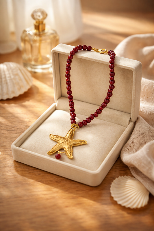 A Collar de cuentas de Vidrio vino tinto y dije de Estrella ⭐️